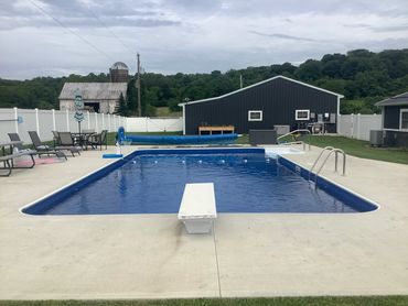 We offer 2 different pool types. An inground vinyl liner pool, as well as the Fiberglass pool. There are multiple types of inground pools including vinyl liner, fiberglass and gunite {sprayed concrete} pools. Each has their pros and cons depending on where you are located within the United States. Here in Ohio, the vinyl liner pool is very popular due to the freezing and thawing cycles we have during the winter months. With proper care, you can expect to get 10-12 years of service from your liner. When it’s time to replace the liner, it’s as simple as draining the pool, cutting out the old liner, make any minor repairs if necessary, and install the new liner and refill with water. This process is suggested to be done by a pool professional, as it does require some special equipment to do it properly. On average the vinyl liner pool is the least expensive of the inground pool options, followed by the fiberglass insert pool and finally the Gunite pool. We chose to install the vinyl liner and fiberglass pools as they are the least expensive of the three options for the average family, and we’re just like you- hard working average folks who want to be able to provide your family a great pool at the best price possible.