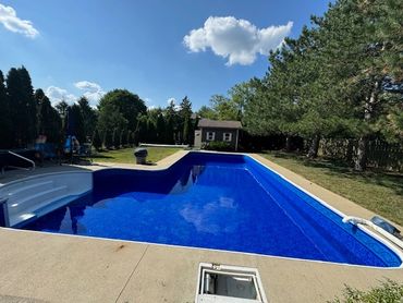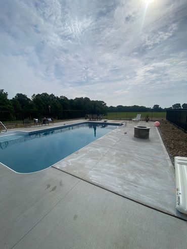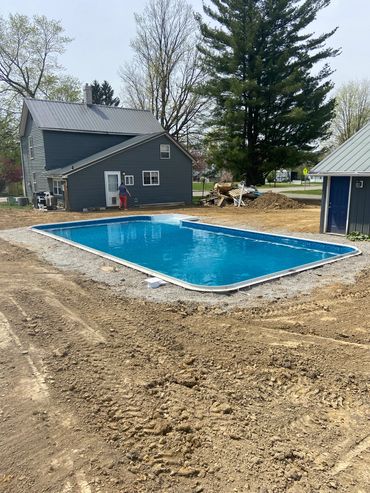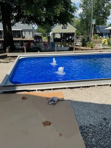 Once the excavation begins, you can expect, on average 2 weeks until the pool is completely installed and ready for use. We understand that this is a significant investment to your property, and take our time to make sure everything is squared, leveled and placed exactly as it should be. Believe it or not, some contractors will skip these steps, assuming that the excavator was absolutely perfectly level and square. I assure you, they were very close, but never perfect. That takes time and dedication by the pool installer to assure its perfect. Ever look at someone’s pool and notice that one end of the pool shows more liner above the water line than the other end? The walls were not leveled when they were placed. We install your pool as if it were going in our backyard. The process does require heavy equipment and will extend beyond the size of the pool for backfill, grading, etc. Be assured that we will tread as lightly as possible , and once installed, we will smooth out around your new pool as best we can. If you would like to have a quote for a concrete patio around your new pool, please let us know when discussing the details. We work with a couple local concrete contractors and we can do all the prep work , allowing them to come in and pour and finish the concrete around your new pool. Start to finish, you, the homeowner will be kept up to date as to the progress, what’s happening next, and when you can expect to be swimming in your new pool. We are there working, but you’re the boss, this is your investment , your pool, we want you to be 100% satisfied from the day we meet until the day we’re finished.